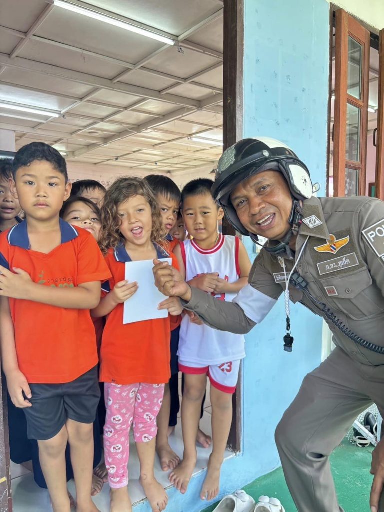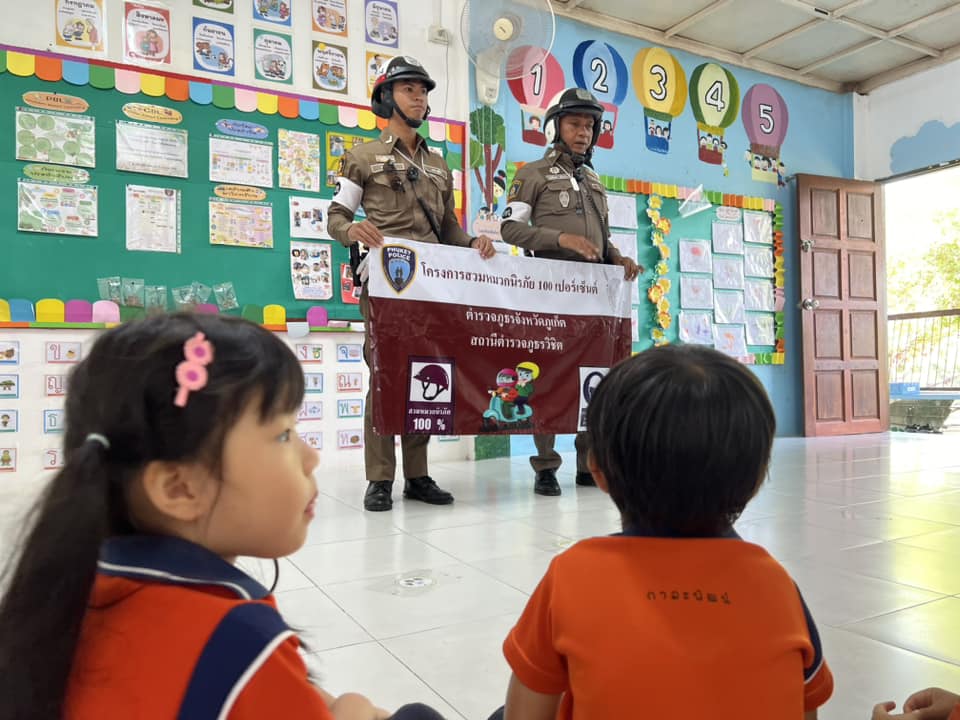 ประชาสัมพันธ์ เกี่ยวกับการเคารพกฎจราจร การใช้รถใช้ถนน รณรงค์ให้สวมหมวกนิรภัยขณะขับขี่ และแนวทางขับรถปลอดภัยบนท้องถนน ณ โรงเรียน กาละพัฒน์