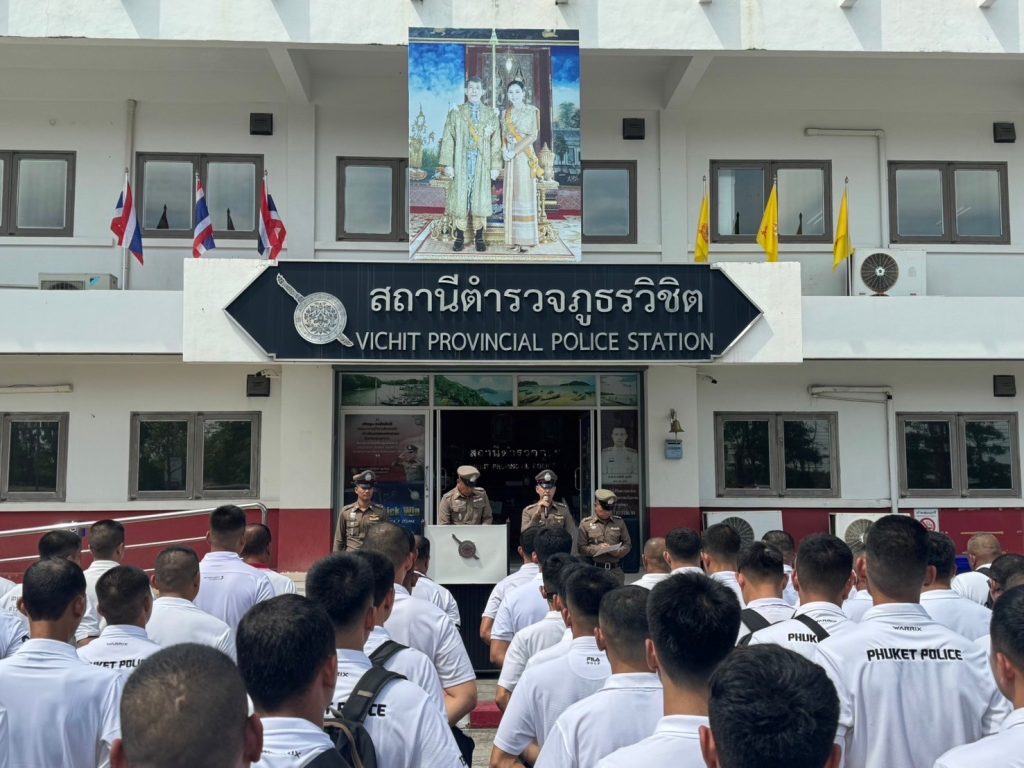 เมื่อวันที่ 16 ก.พ. 67 เวลาประมาณ 14.00น. ภายใต้อำนวยการของ พ.ต.อ.ชาตรี ชูแก้ว ผกก.สภ.วิชิต นำโดย พ.ต.ท.อนุรักษ์ ปริญญาสถิรกุลรอง ผกก.ป.สภ.วิชิต, ร่วมประชุมชี้แจงและปล่อยแถวภารกิจการปฏิบัติ การถวายความปลอดภัย สมเด็จพระเจ้าวรวงศ์เธอ พระองค์เจ้าอทิตยาทรกิติคุณ เสด็จไปประทับ ณ โรงแรมศรีพันวา ภูเก็ต ลัคซูรี่ พูลวิลล่า ในระหว่างวันที่ 16 ก.พ.67-25 ก.พ.67 (เป็นการส่วนพระองค์)ตรวจความพร้อม เครื่องแต่งกาย ทรงผม หนวดเครา จอนเล็บ ความสะอาด อุปกรณ์ มอบหมายภารกิจ กำชับการปฏิบัติ “การถวายความปลอดภัยให้เป็นไปด้วยความเรียบร้อย สมพระเกียรติ ปฏิบัติให้ถูกต้องตามพระราชประสงค์ และ บังเกิดความปลอดภัยสูงสุด